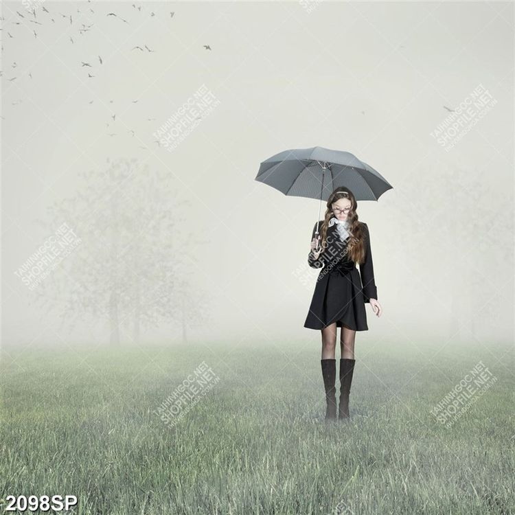 Tranh spa cô gái đứng che giữa cánh đồng cỏ