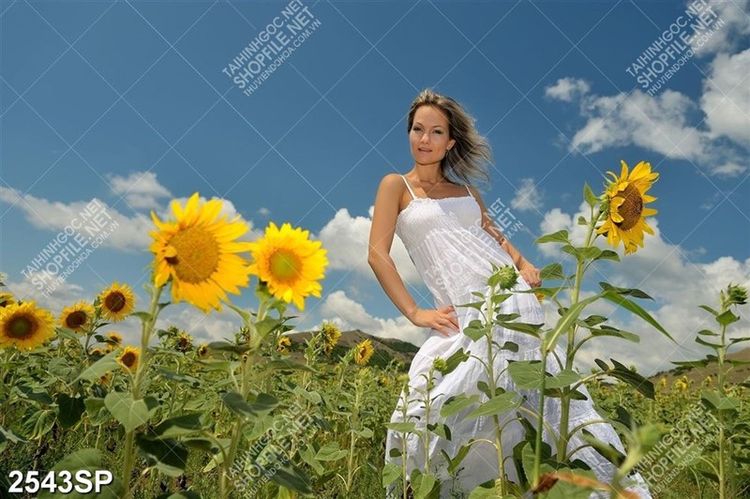 Tranh cô gái đứng tạo dáng trong cánh đồng hoa hướng dương treo spa