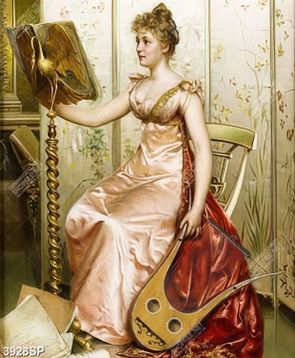 Tranh psd cô gái cầm cây đàn