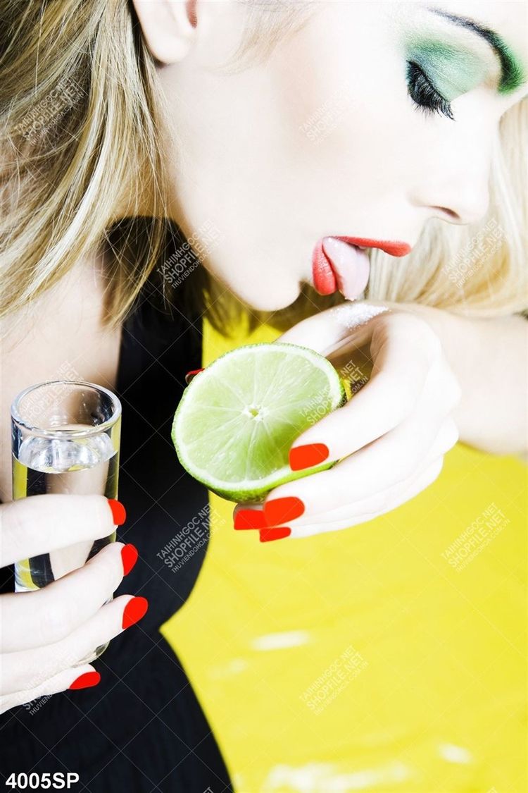 Tranh cô gái cầm lát chanh tươi