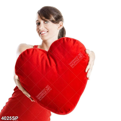 Tranh cô gái cầm chiếc gối trái tim đỏ