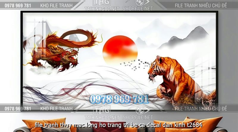 file tranh trang tri decor be ca hai con rong va chu nghia r3d 283
