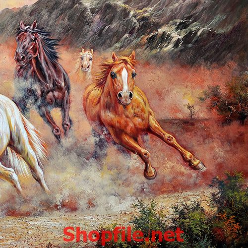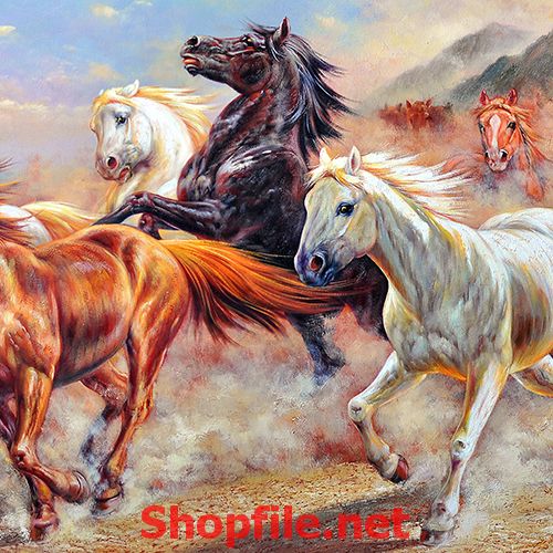 trang phong thủy treo tường,hình ảnh tranh phong thủy chất lượng cao,hình phong thủy đẹp dùng cho trang trí ngày tết in mẫu những chú ngựa chạy trên đồng cỏ