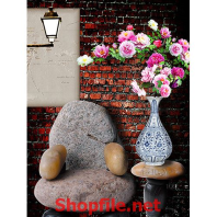 tranh treo tường phong thủy đẹp,hình ảnh tranh phong thủy chất lượng cao,hình phong thủy đẹp dùng cho trang trí ngày tết in mẫu lọ hoa bằng đá