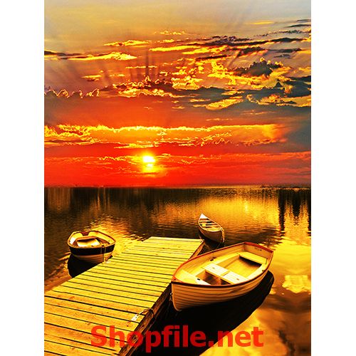 tranh treo tường phong thủy đẹp,hình ảnh tranh phong thủy chất lượng cao,hình phong thủy đẹp dùng cho trang trí ngày tết in mẫu cảnh hoàng hôn bên bến đò