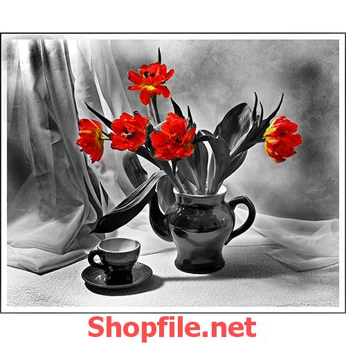 tranh treo tường phong thủy đẹp,hình ảnh tranh phong thủy chất lượng cao,hình phong thủy đẹp dùng cho trang trí ngày tết in mẫu bình hoa đỏ và đen