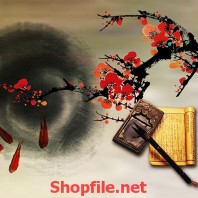 tranh treo tường phong thủy đẹp,hình ảnh tranh phong thủy chất lượng cao,hình phong thủy đẹp dùng cho trang trí ngày tết in mẫu cái quạt và cây đào
