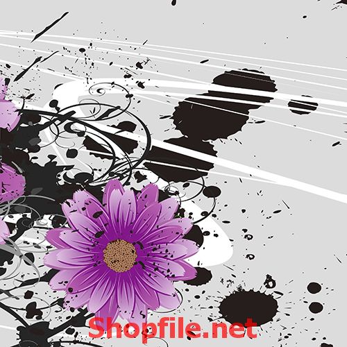 tranh dán tường bông hoa nhiều cánh màu tím