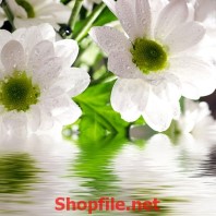 tranh dán tường bông hoa trắng và nước
