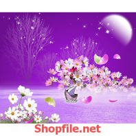 tranh treo tường phong thủy đẹp,hình ảnh tranh phong thủy chất lượng cao,hình phong thủy đẹp dùng cho trang trí ngày tết in mẫu tranh dán tường cây hoa đào và vầng trăng