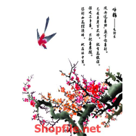 tranh dán tường đẹp ,tranh dán tường động vật ,hình ảnh tranh phong thủy chất lượng cao mẫu tranh dán tường chim én và hoa đào