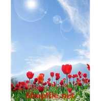 tranh dán tường đẹp ,tranh dán tường động vật ,hình ảnh tranh phong thủy chất lượng cao mẫu tranh dán tường vườn hoa tuy líp đỏ