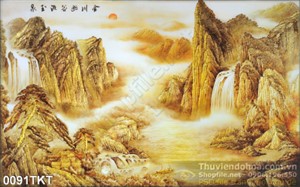 Tranh kim tiền thư pháp sơn thủy