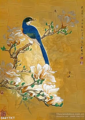 Tranh kim tiền chim và hoa