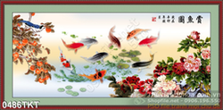 Tranh thư pháp cá Koi và hoa mẫu đơn