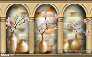 Tranh kim tiền bình hoa trang trí