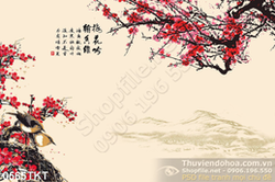 Tranh thư pháp hoa đào