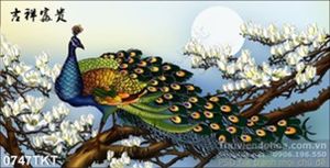 Tranh kim tiền chim công và hoa