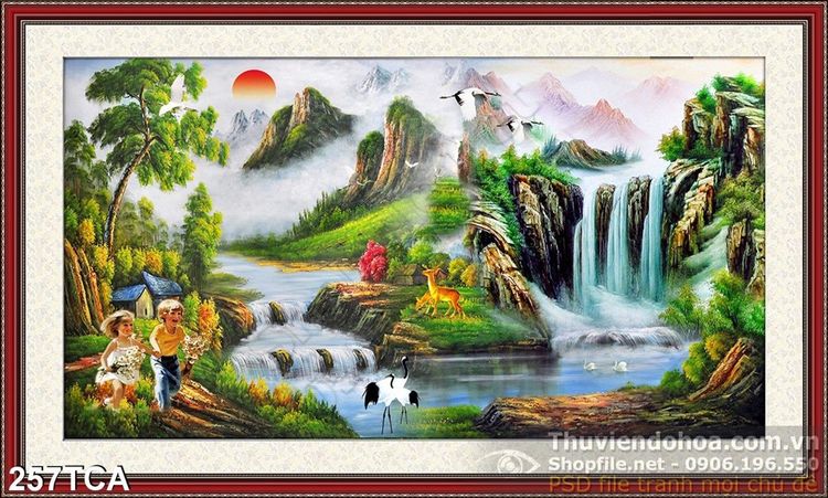 Tranh Sơn Dầu Châu Âu cảnh thác nước