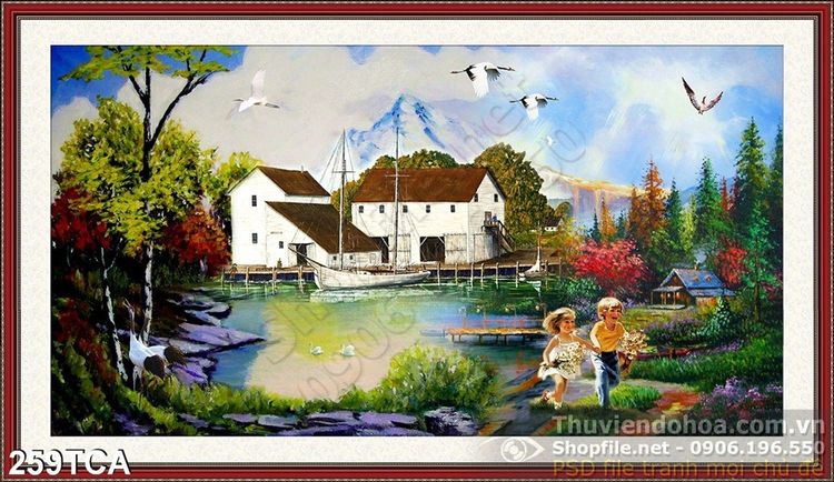 Tranh Sơn Dầu Châu Âu ngôi nhà nhỏ