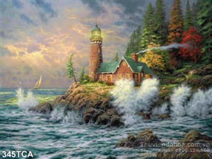 Tranh Sơn Dầu Châu Âu ngôi nhà ven biển