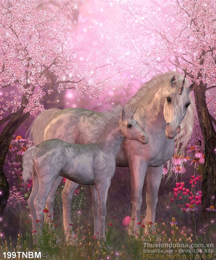 Tranh Ngựa Psd nghệ thuật và hoa đào