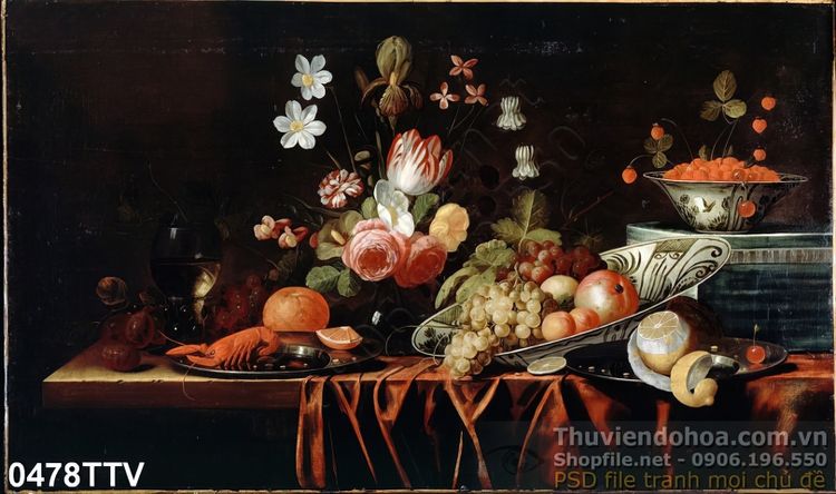 Tranh tĩnh vật hoa quả sơn dầu treo tường đẹp