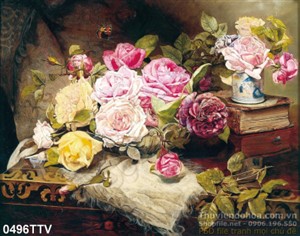 Tranh tĩnh vật hoa quả sơn dầu trang trí phòng ngủ