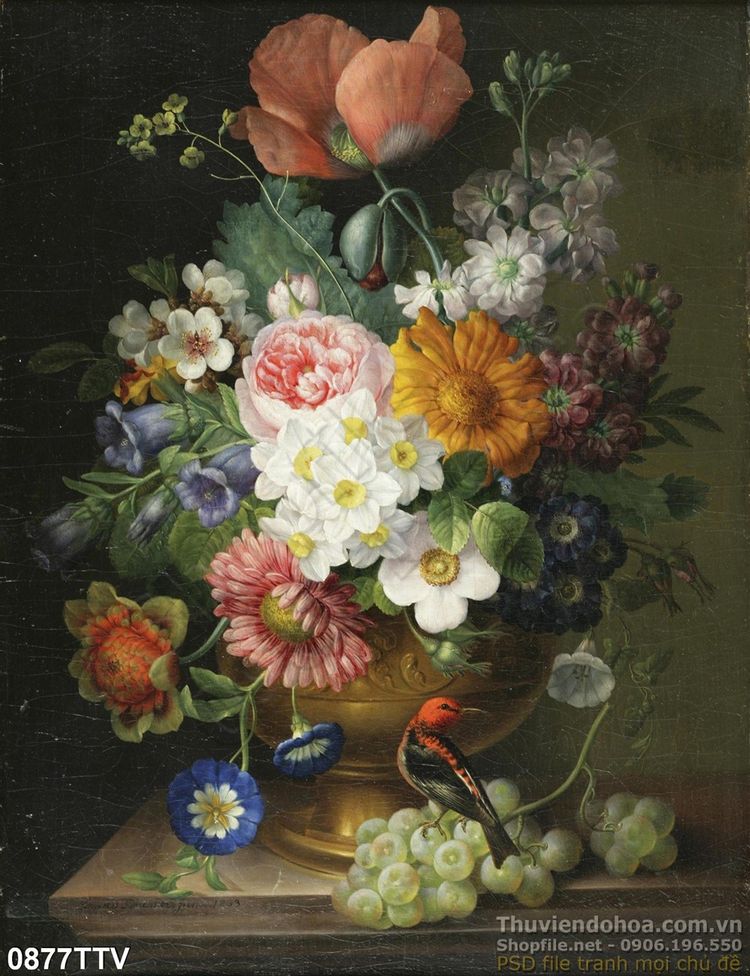 Tranh tĩnh vật hoa quả sơn dầu treo tường phòng khách