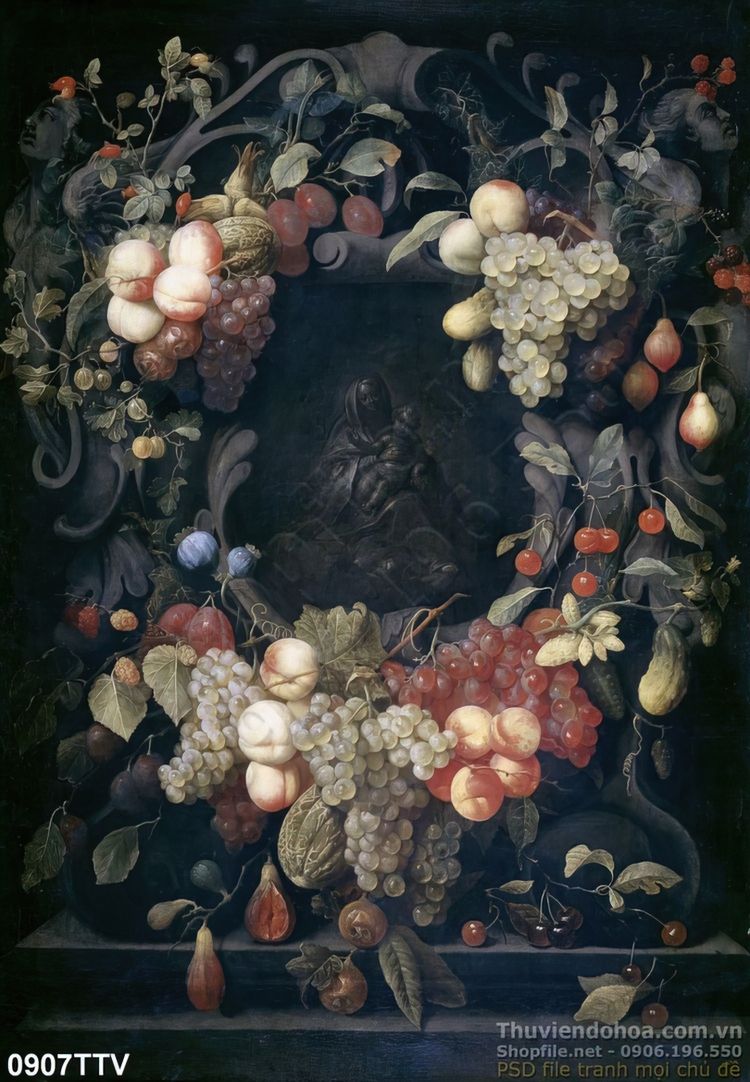 Tranh tĩnh vật hoa quả sơn dầu trang trí phòng ngủ
