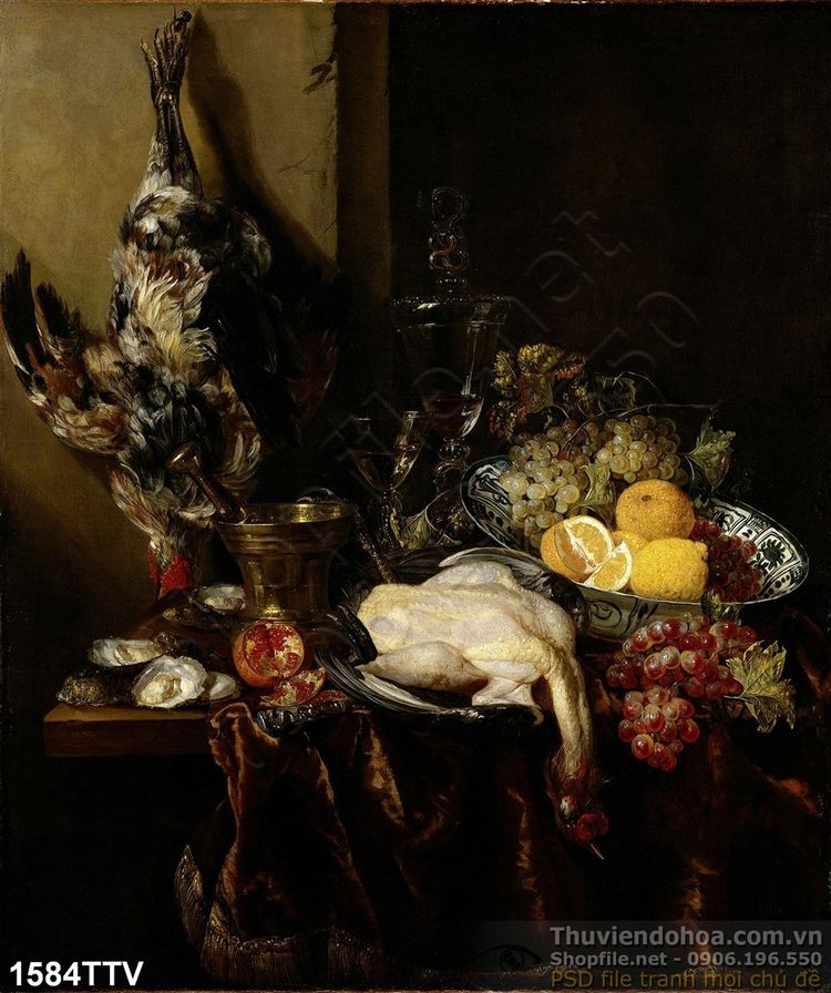 Tranh tĩnh vật hoa quả sơn dầu treo tường
