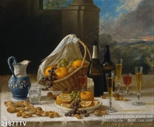 Tranh tĩnh vật hoa quả sơn dầu treo tường phòng ăn