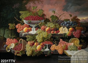 Tranh tĩnh vật hoa quả sơn dầu trang trí tường