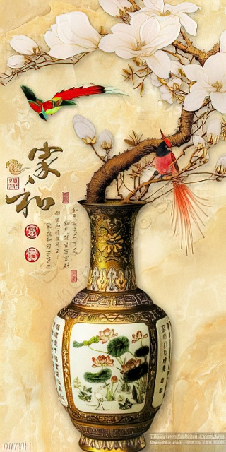 Tranh bình hoa cổ thư pháp treo tường đẹp