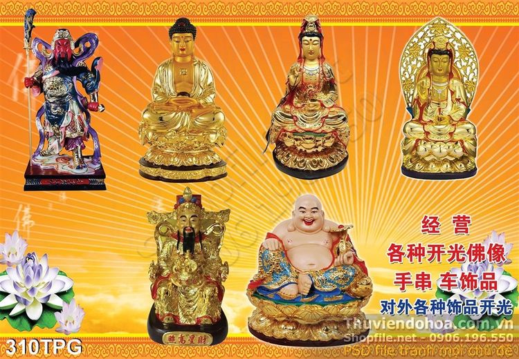 Tranh tượng các vị Phật bằng vàng
