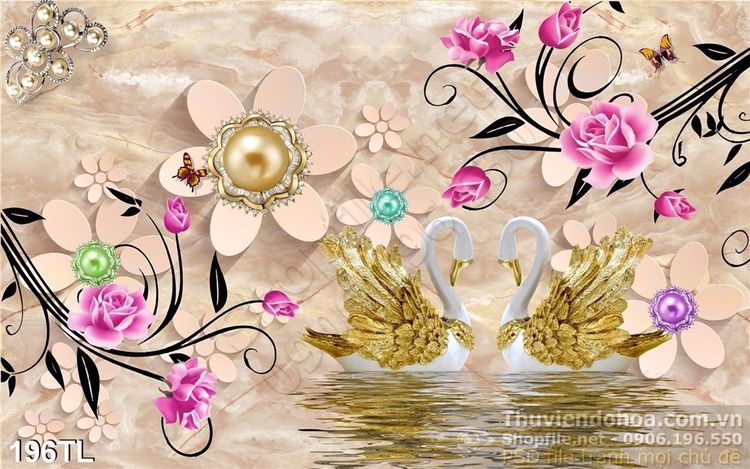 Tranh lụa 3D thiên nga vàng