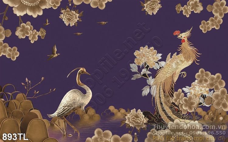 Tranh chim công và hạc kim tiền