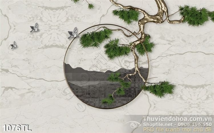 Tranh cây tùng in gạch đẹp