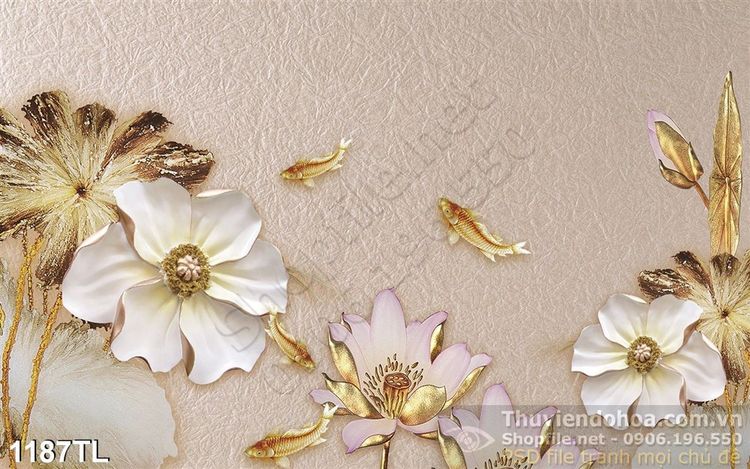 Tranh lụa 3D hoa Sen và cá chép đẹp