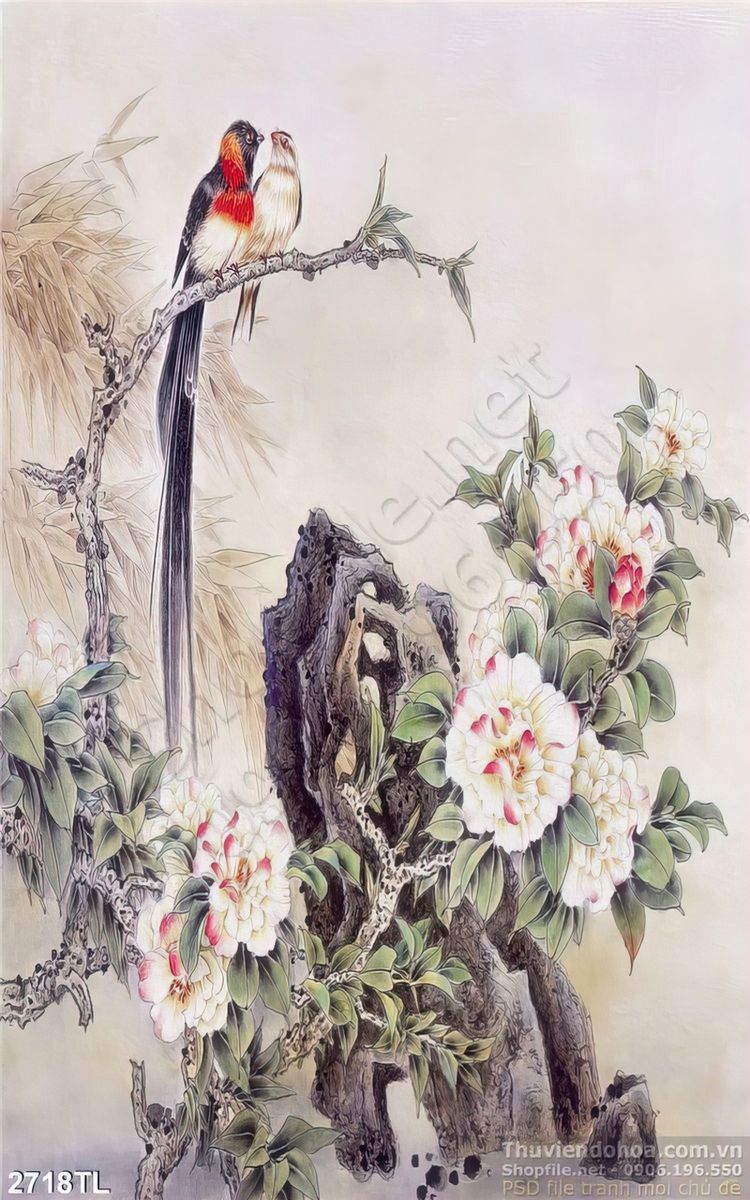 Tranh thư pháp hoa mẫu đơn trang trí phòng đẹp