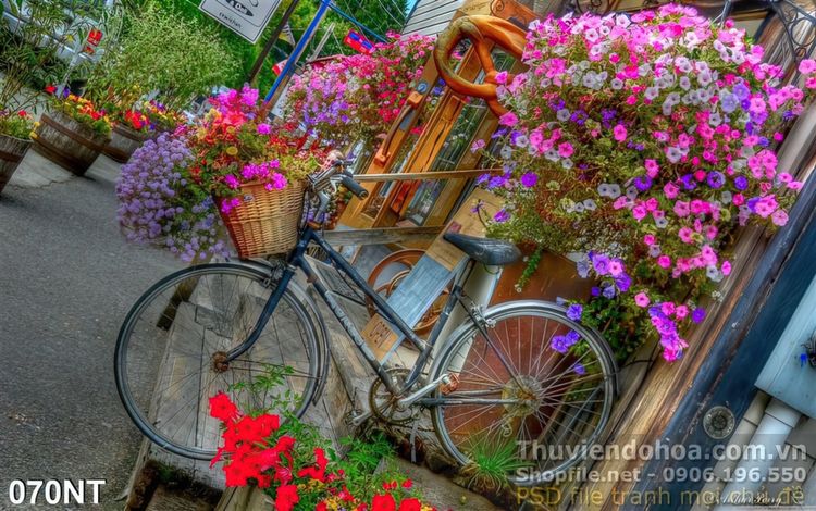Tranh xe đạp chở hoa