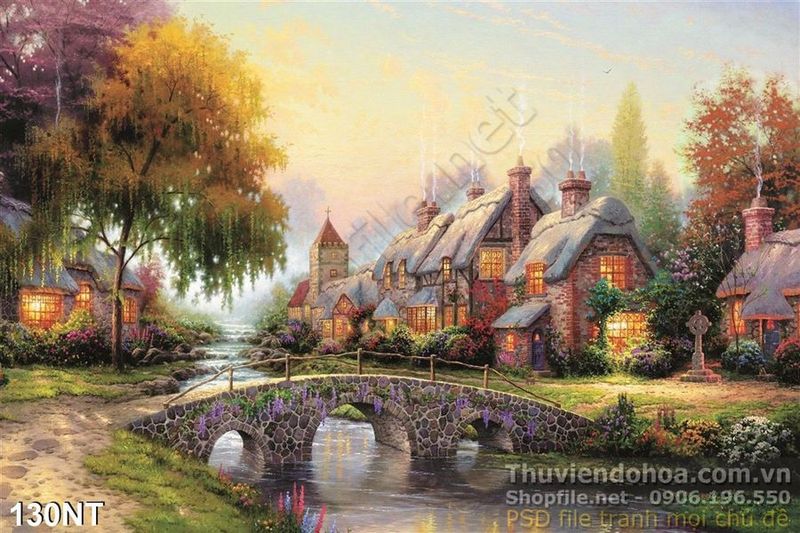 Tranh sơn dầu khu biệt thự Châu Âu