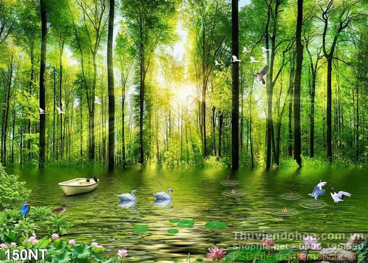 Tranh con thuyền và khu rừng