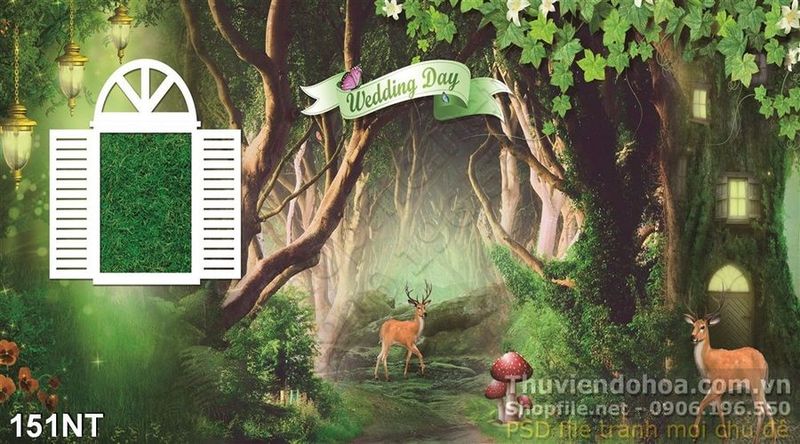 Tranh cửa sổ và khu rừng trang trí phòng bé
