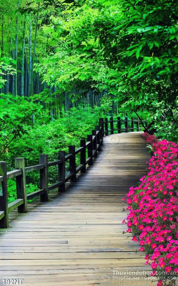 Tranh con đường vào khu rừng tre
