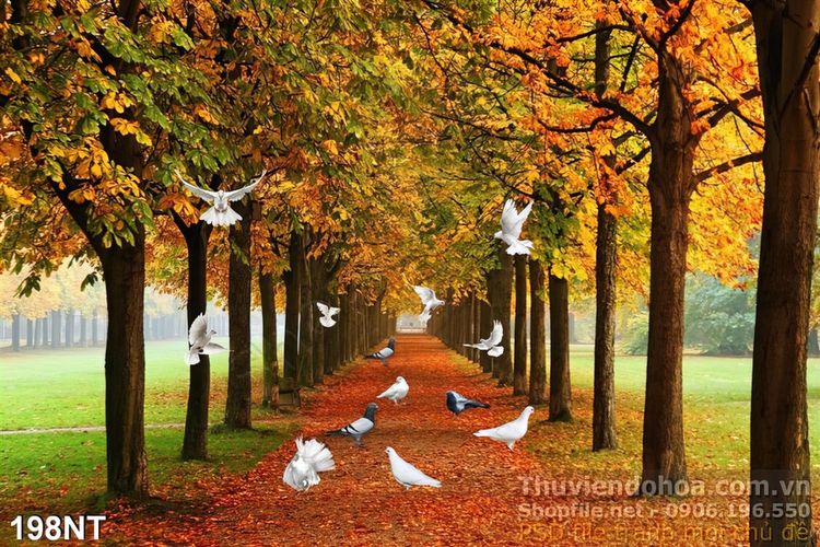 Tranh con đường màu thu