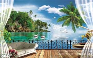 Tranh ban công nhìn ra hồ nước