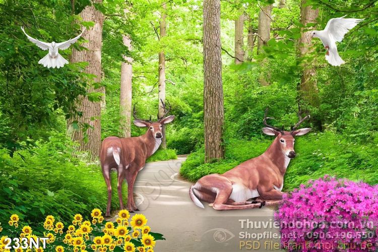 Tranh đôi hươu và khu rừng xanh