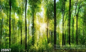 Tranh bình minh trong khu rừng