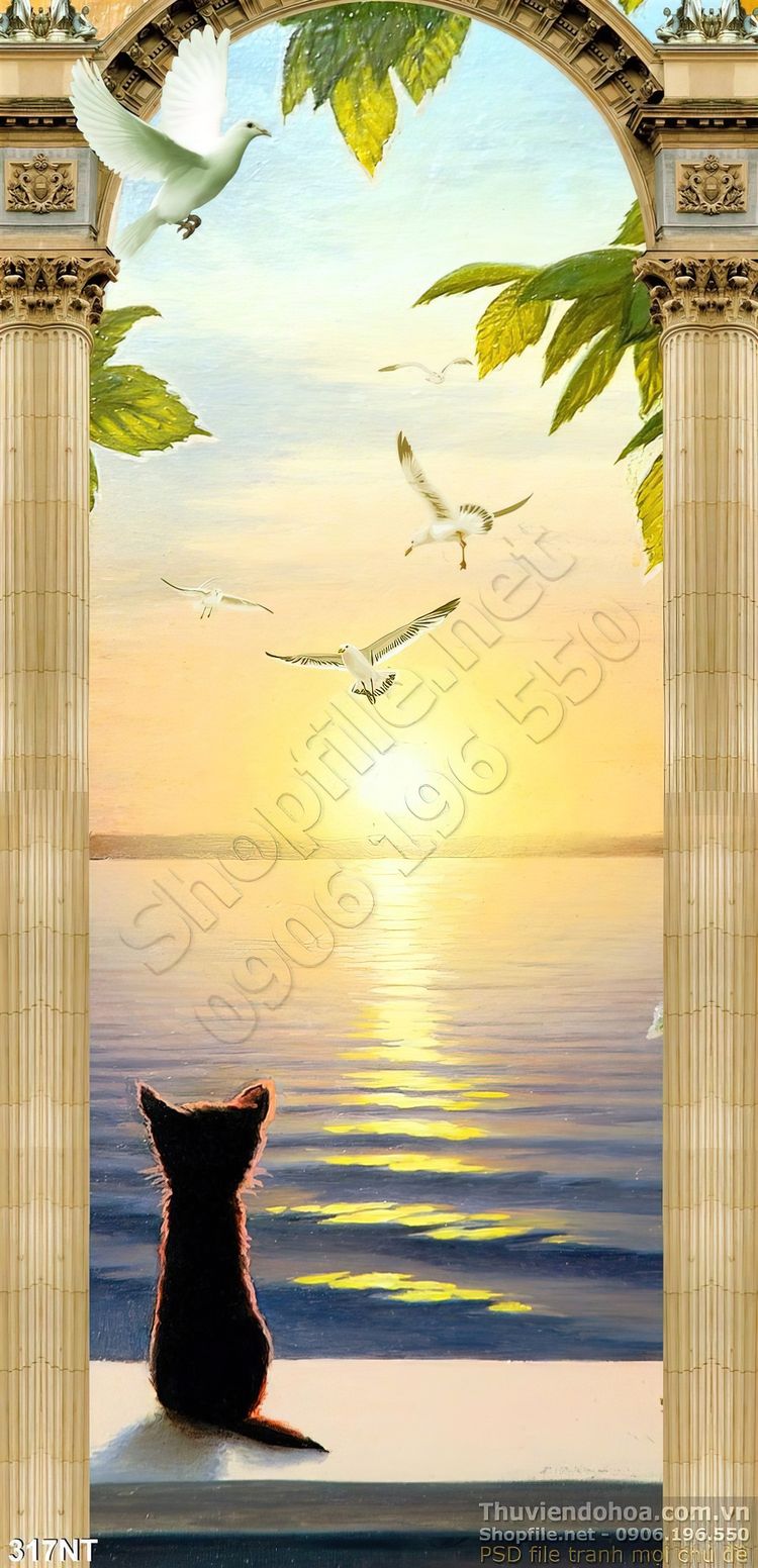 Tranh cửa sổ và chú mèo con